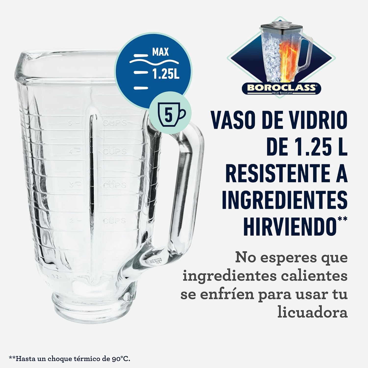 Vaso: Incluye un vaso de vidrio refractario (boroclass o similar) de alta resistencia, que soporta cambios bruscos de temperatura y es fácil de limpiar.